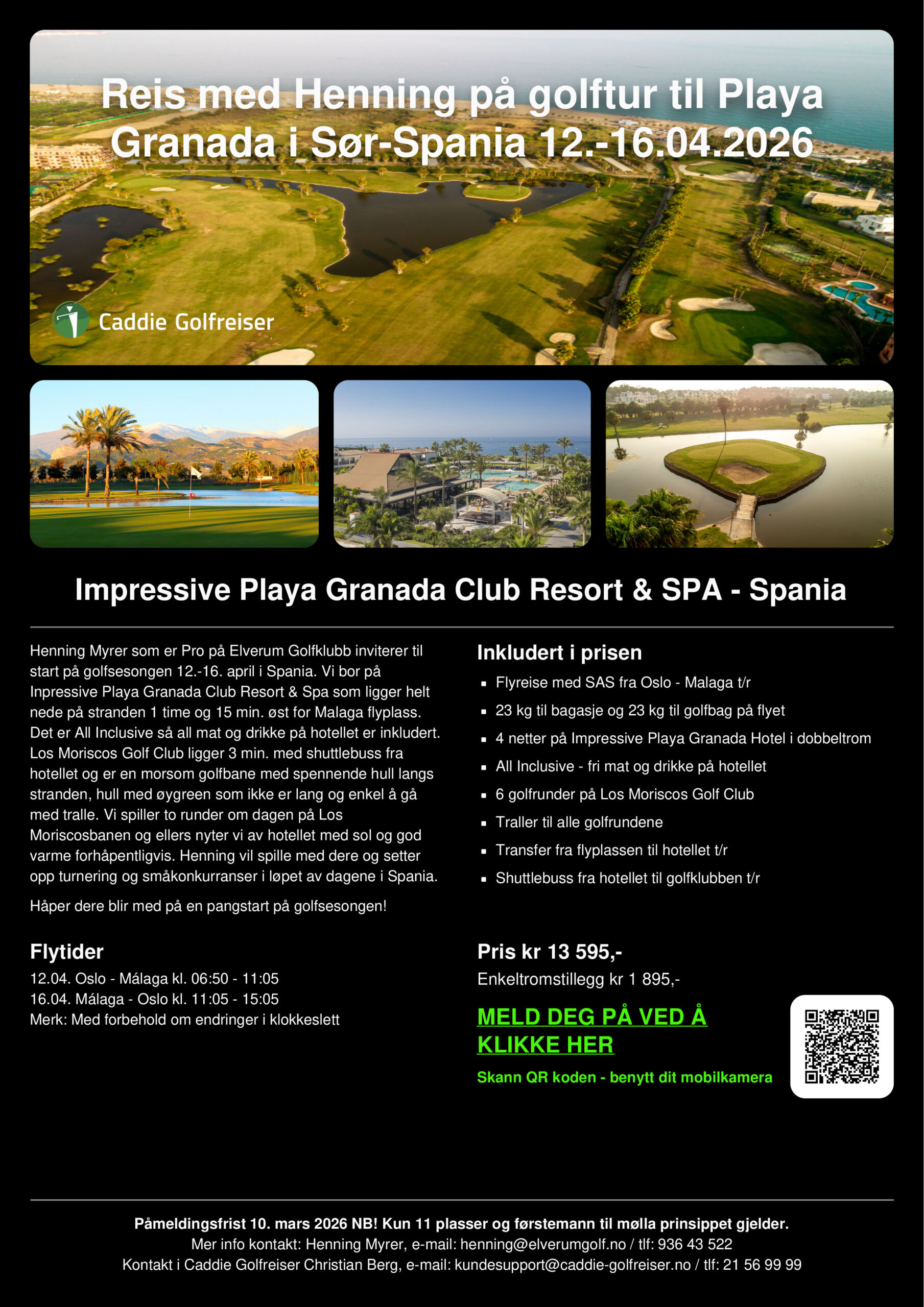 Påmelding kan gjøres her: https://www.caddie-golfreiser.no/pro-golfreiser/bli-med-henning-til-playa-granada-i-spania-12-16-april-2026